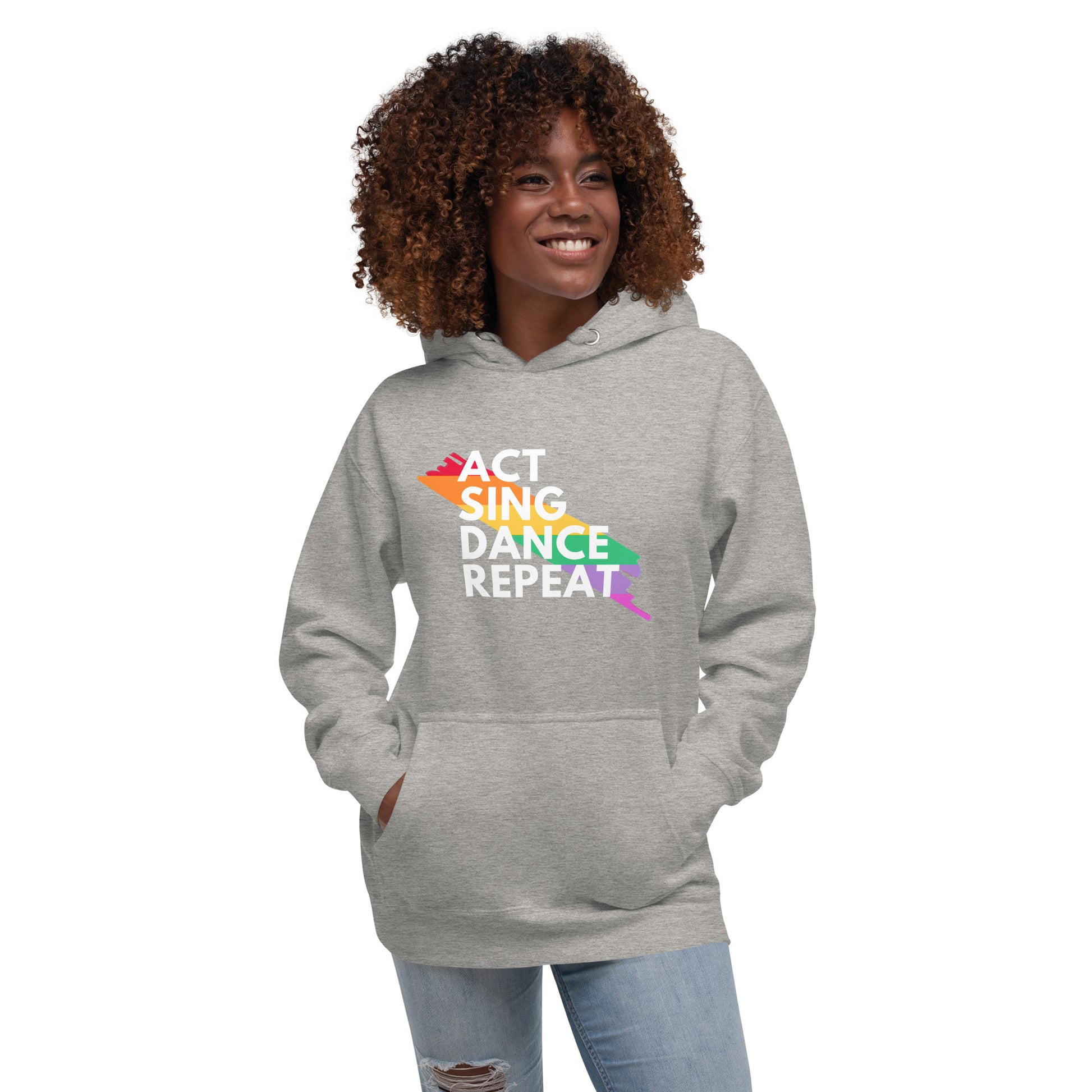 Rainbow Splash Unisex Theater Lover Hoodie, Act Sing Dance Repeat Sweatshirt, Musicals Drama Plays