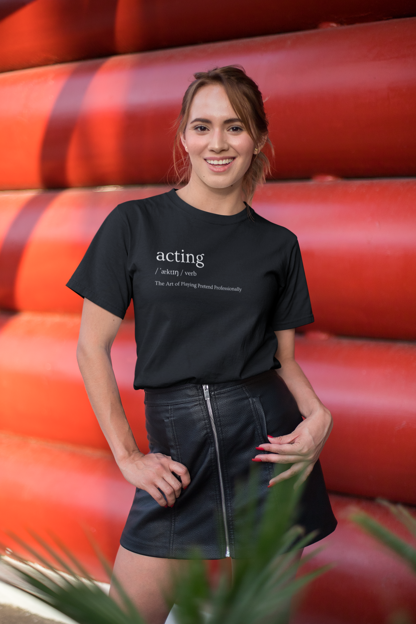 Embrace the transformative power of performance with our "Acting" Creative Definition T-Shirt! Perfect for actors, theater enthusiasts, and anyone who understands the magic of stepping into different roles, this shirt celebrates the art of acting with a unique and insightful definition.