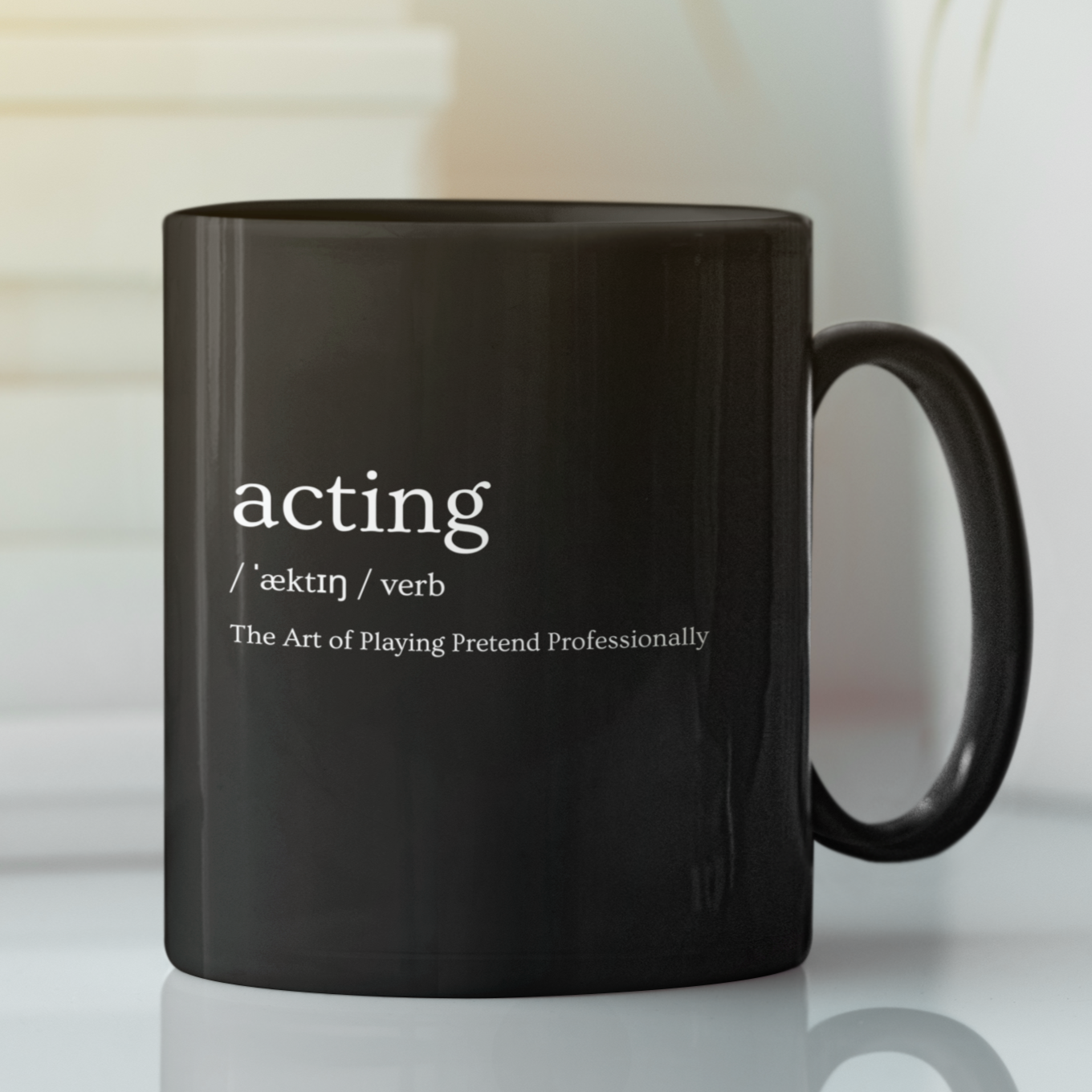 Theater Lover Glossy Black Mug, Acting Definition Mug, Acting Gift, Musicals Mug, Plays Lover Gift