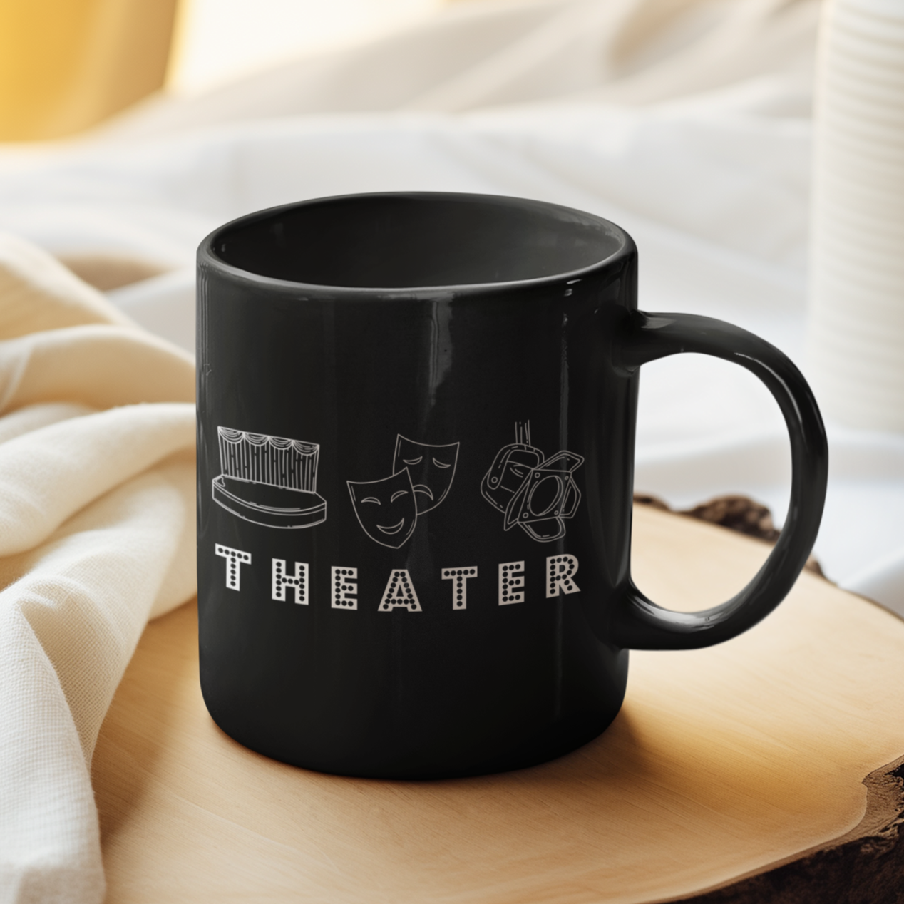 Glossy Black Theater Mug, Plays Lover Gift, Drama Director Mug, Gift for Theater Enthusiast