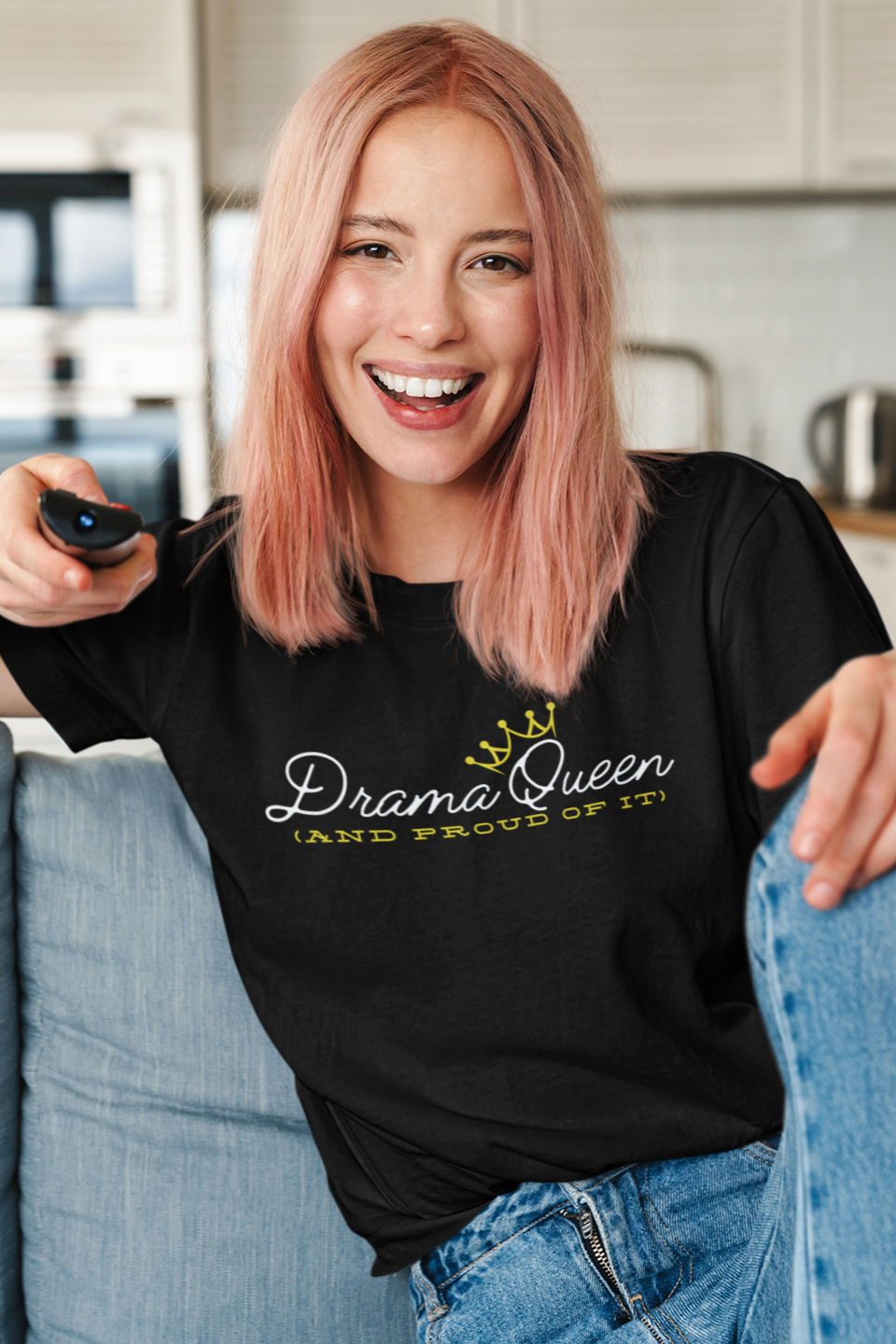 Celebrate your theatrical flair with our "Drama Queen (And Proud of It)" T-Shirt! Perfect for those who embrace the grand gestures and vibrant personalities that make theater so captivating, this tee is a bold statement of your passion for drama and your pride in your dramatic presence.