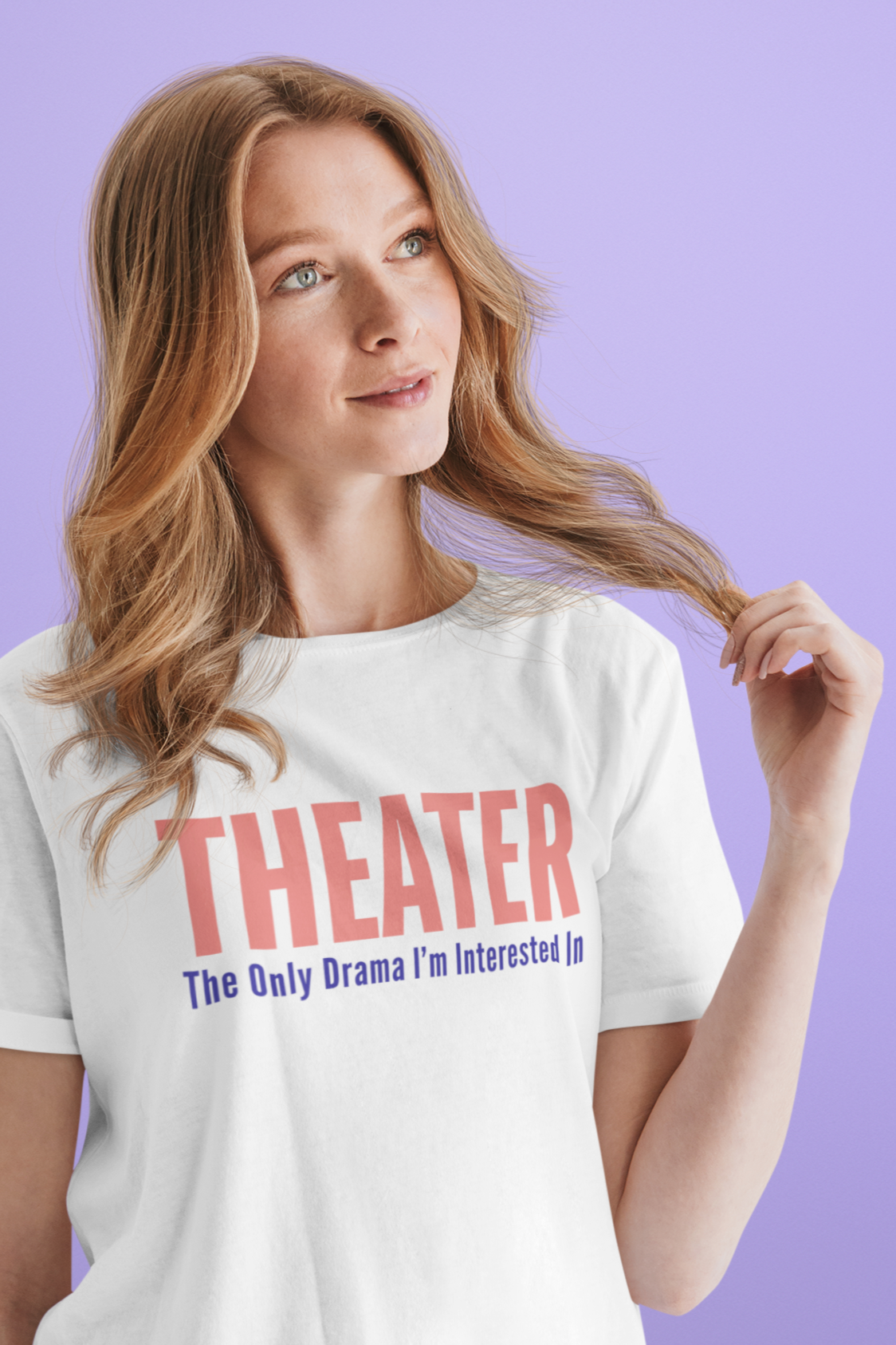 Show your love for the stage with our "Theater - The Only Drama I'm Interested In" T-Shirt! Perfect for those who prefer their drama in the spotlight rather than in their everyday lives, this tee is a must-have for theater enthusiasts and performers who cherish the art of performance.