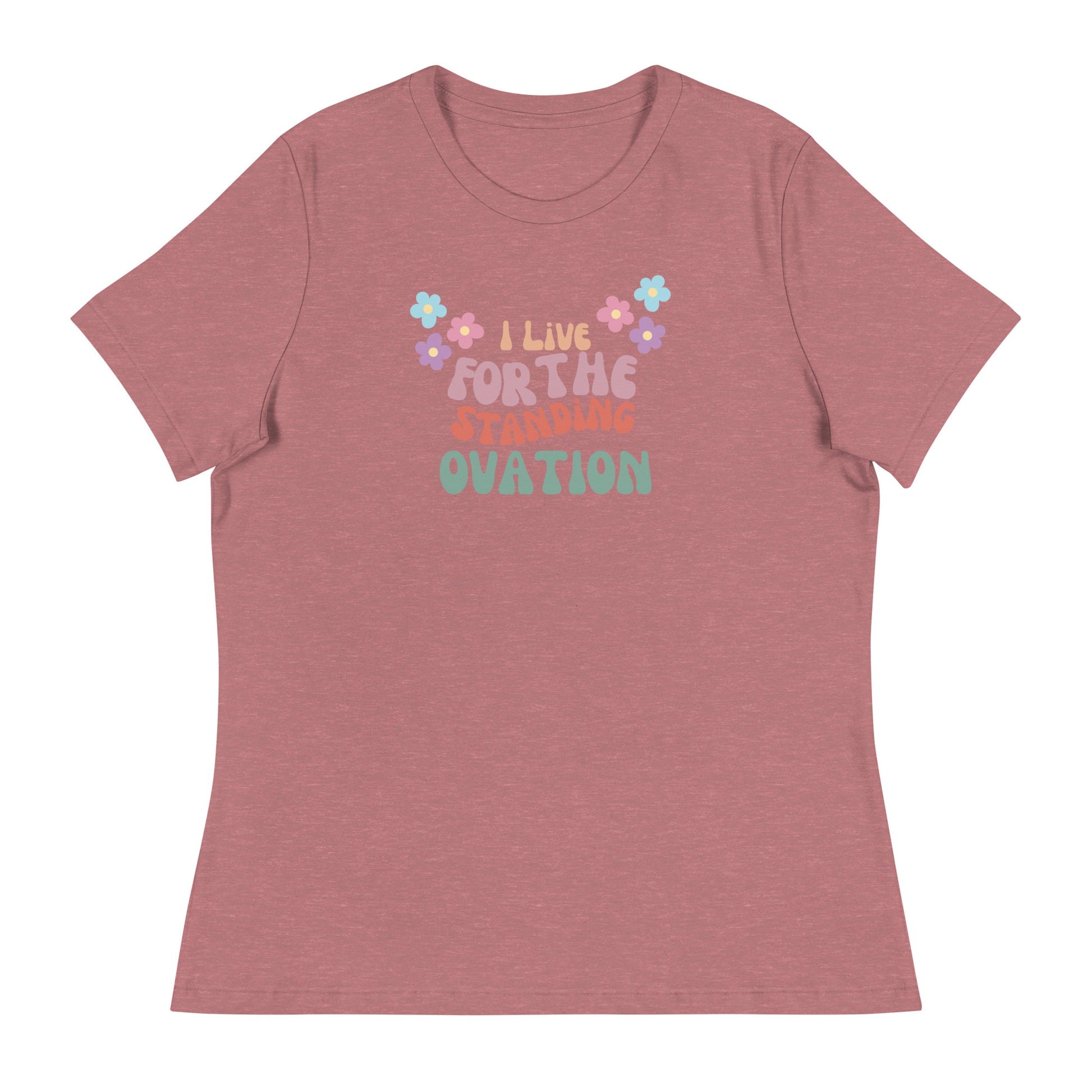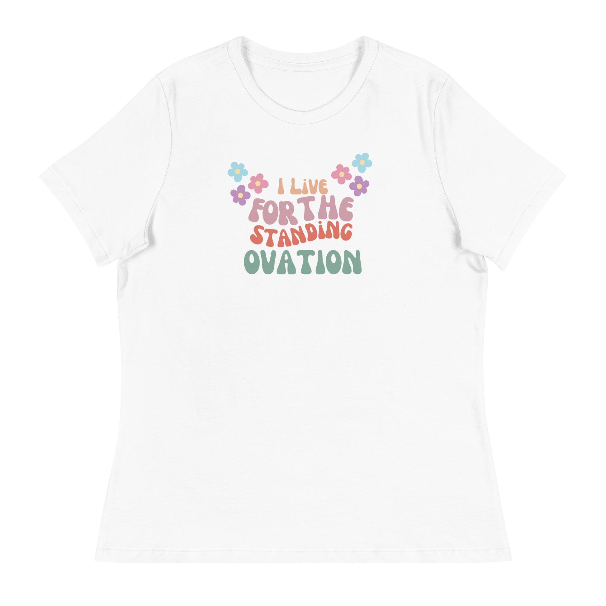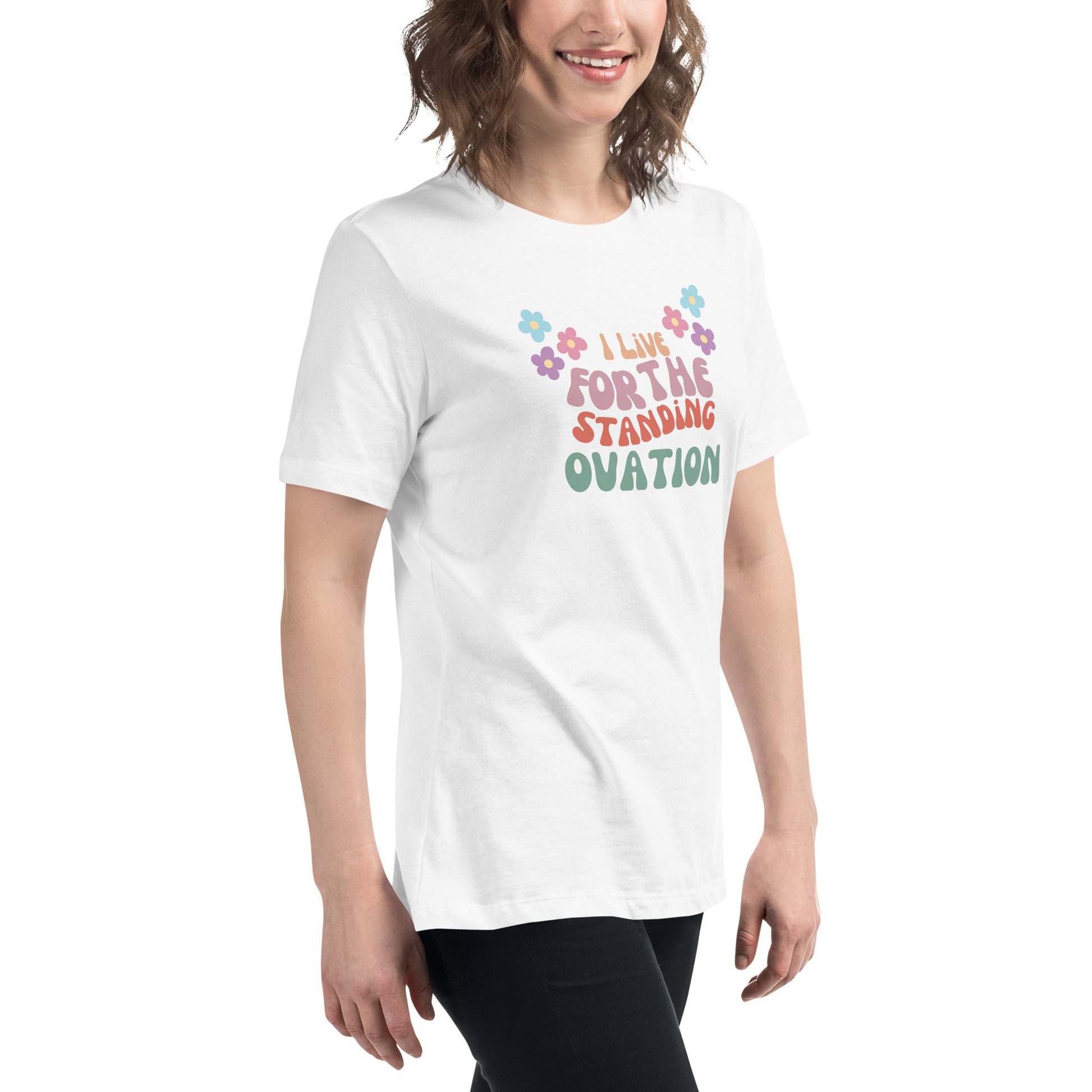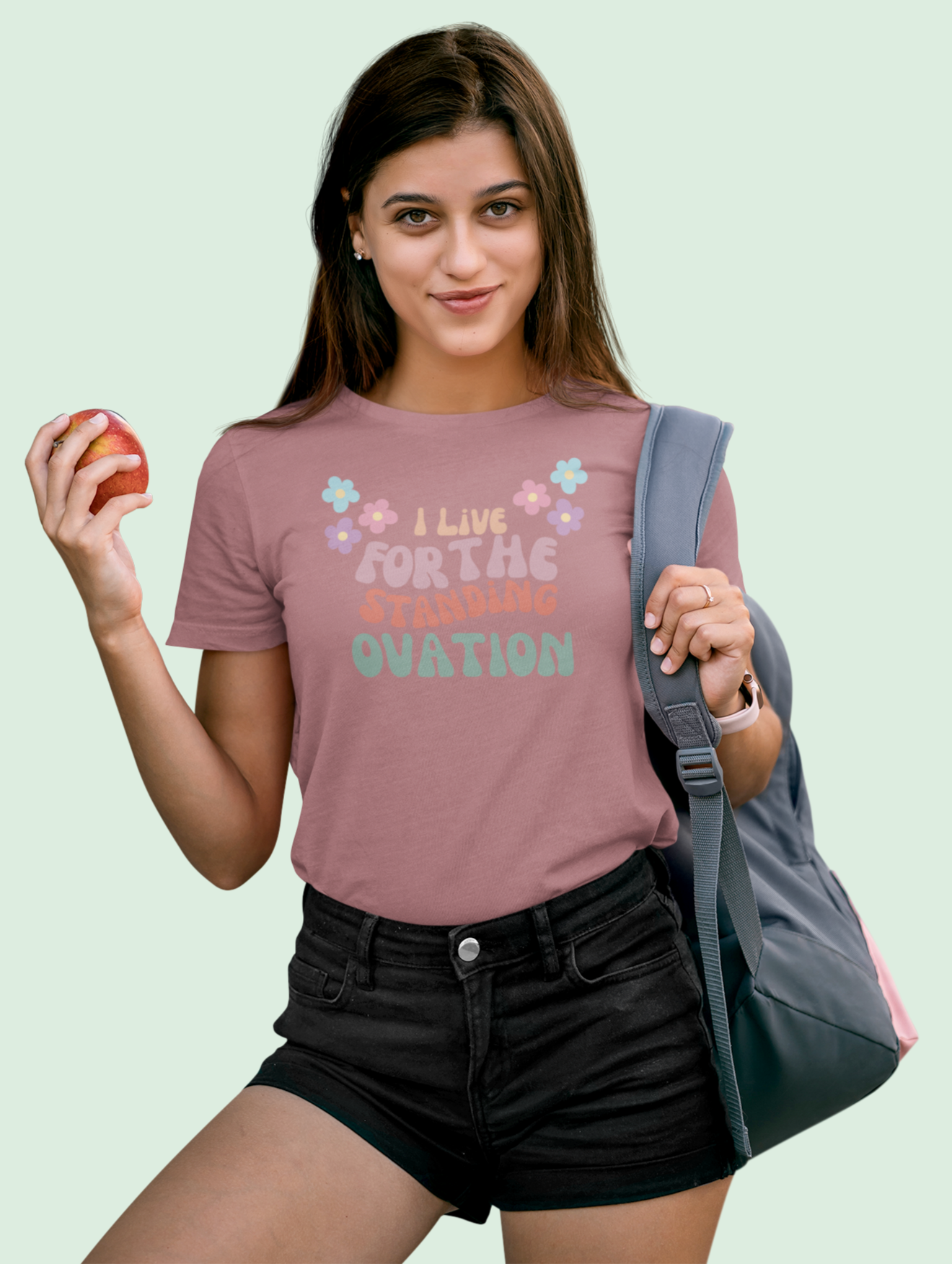 Embrace your passion for the stage with our "I Live for the Standing Ovation" T-Shirt! Perfect for theater performers, enthusiasts, and anyone who dreams of that exhilarating moment when the audience rises to their feet, this tee is a celebration of the ultimate reward for a stellar performance.