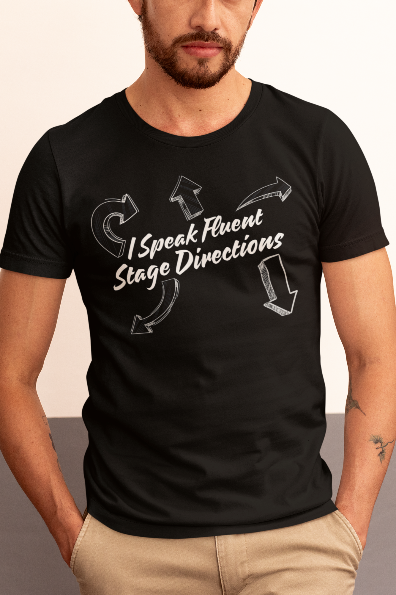 Show off your theater expertise with our "I Speak Fluent Stage Directions" T-Shirt! Designed for those who navigate the stage with ease and precision, this tee is perfect for actors, directors, and theater aficionados who understand the art of every cue and movement.