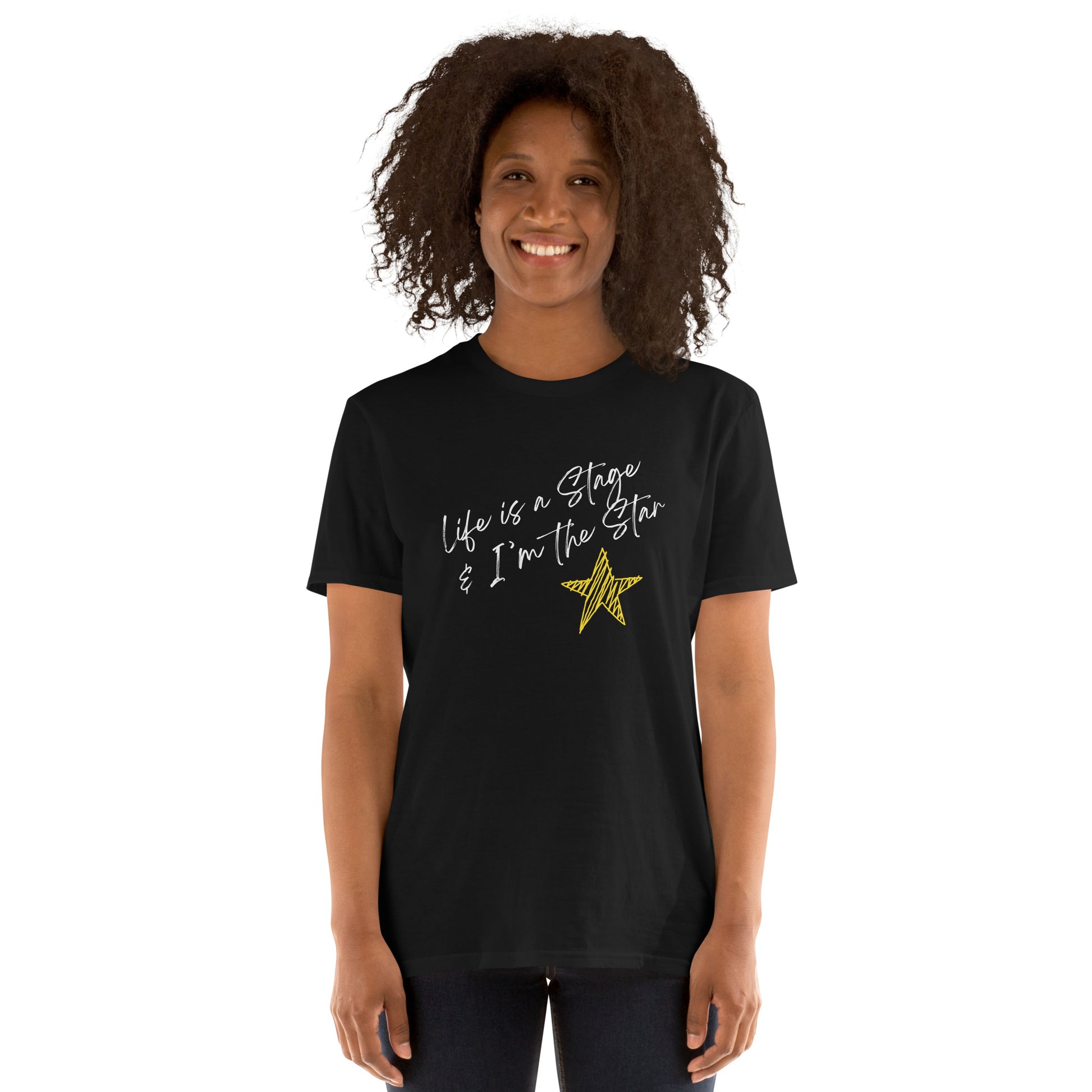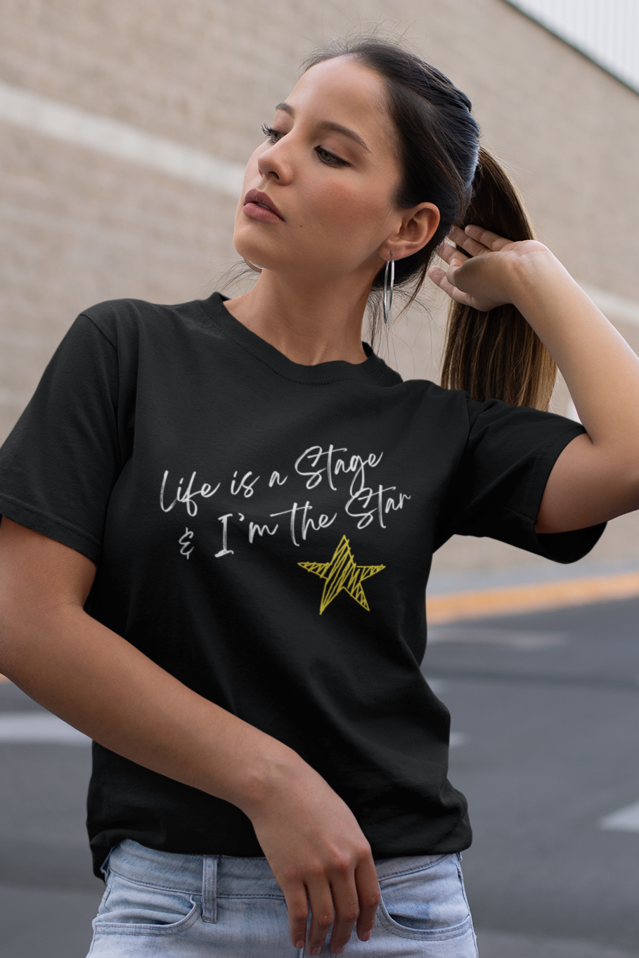 Step into the spotlight with our "Life is a Stage & I'm the Star" T-Shirt! Perfect for those who see every day as an opportunity to shine, this tee is a bold declaration of your passion for the theater and your belief in your own star power.