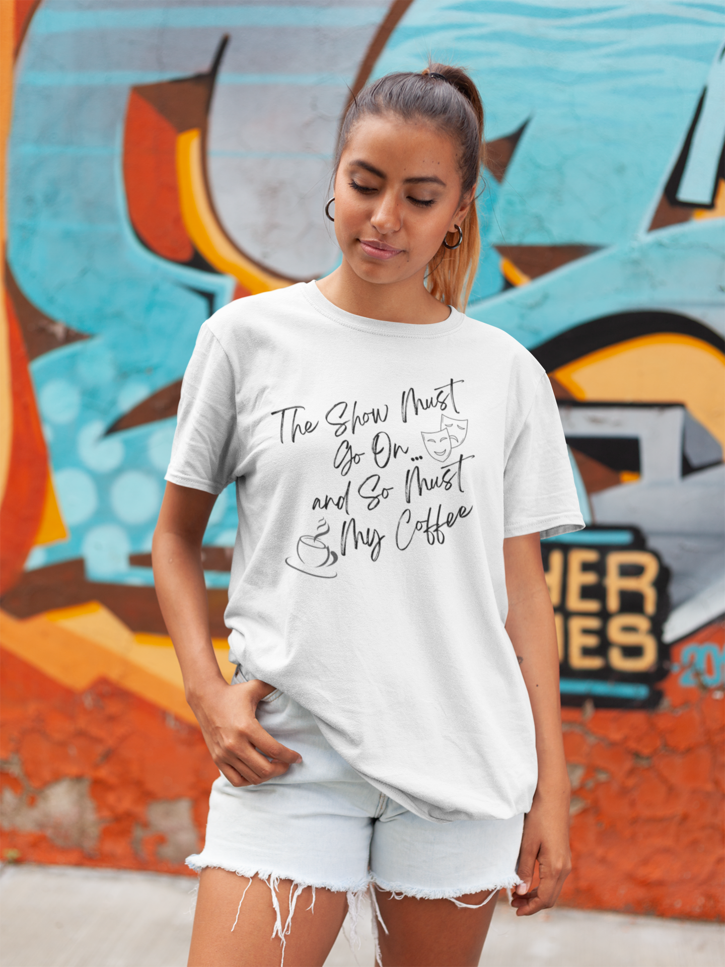 Keep the energy high and the coffee flowing with our "The Show Must Go On and So Must My Coffee" T-Shirt! Perfect for theater lovers and performers who know that the magic of the stage and the fuel of a good cup of coffee go hand in hand, this tee combines your passion for theater with a humorous nod to your caffeine needs.