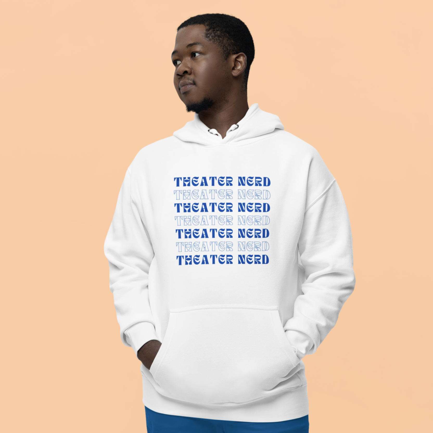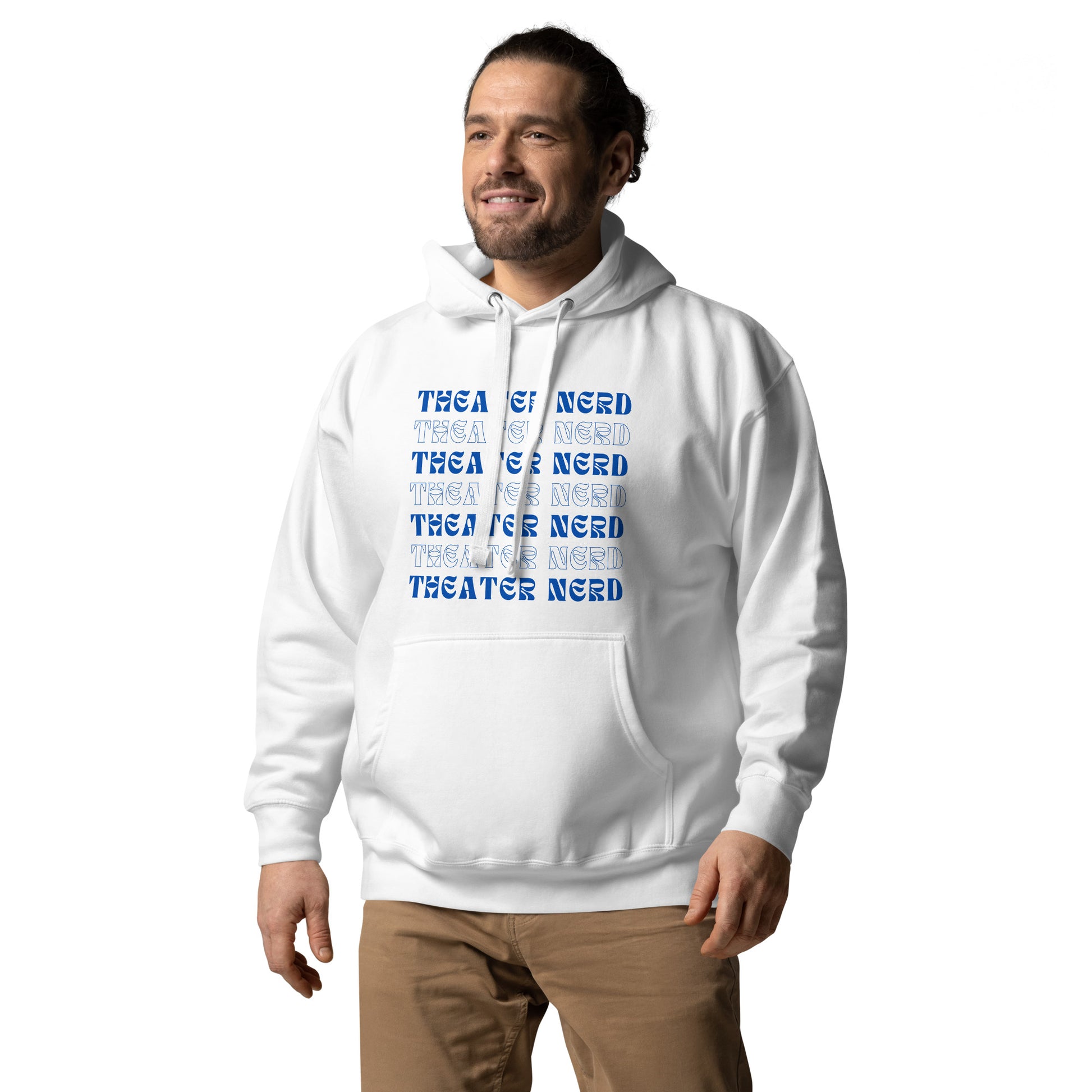 Embrace your theatrical obsession with our "Theater Nerd" Repeated Pattern Sweatshirt! This sweatshirt is a playful celebration of your love for the stage, featuring a bold print that proudly announces your theater nerd status.